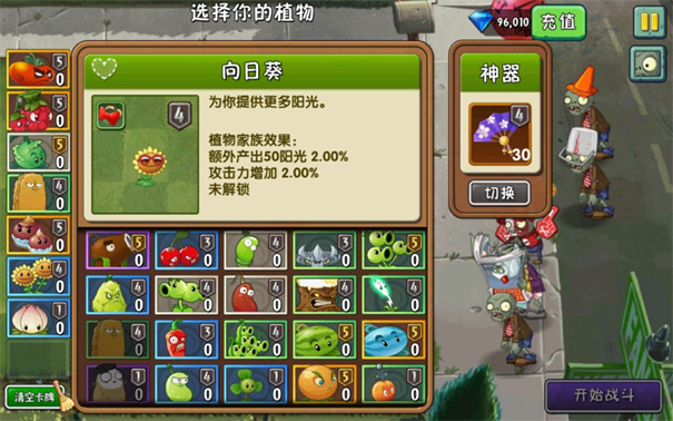 1、选择不同的植物进行战斗,这里有着多种不同的选择,你能够合理的去进行闯关。