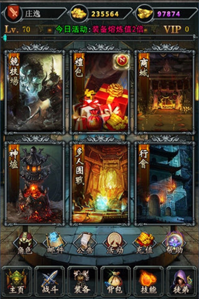 游戏中每个玩家在战斗胜利后会有一定几率获得装备,玩家可以将不需要的装备扔进熔炉进行熔炼,熔炉会熔铸玩家投入的装备,并且有很大几率产生更高品质的装备,甚至是神器!你还在犹豫什么,象征你尊贵身分的神器等你来熔铸!