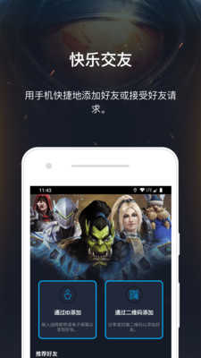 3、现在,通过手机就可以使用暴雪战网应用程序的添加与管理好友功能。你可以发送和接受好友请求,查看推荐好友,甚至通过扫描二维码面对面添加好友。