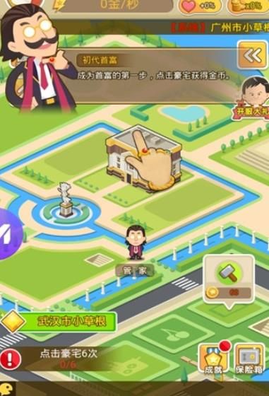 1、成为一个创业者,点击你别墅获得金钱然后打造各种不同的店铺来获得盈利;