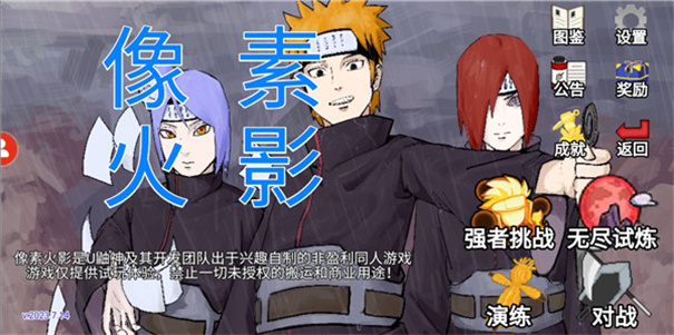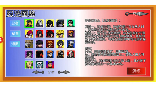 3、经典复古的像素风图形打造的各种帅气忍者,可以操控这些忍者来同其它动漫之中的角色进行格斗