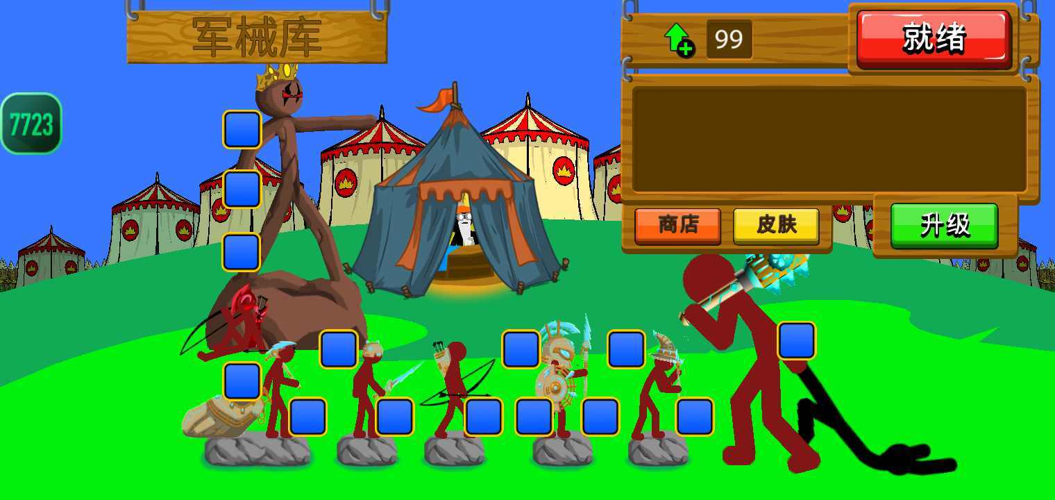 1、不同火柴人士兵的能力和技能,合理组织战斗布局,才能在战场上取得胜利。