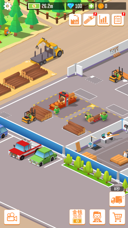 欢迎来到要当老板伐木工厂一款全新的放置模拟游戏。在这个闲置的模拟游戏中,您将开始经营一个小型锯木厂并努力管理,扩大工厂以追求大梦想:建立木材帝国!关于游戏的具体玩法,且跟小编来详细了解一下吧!