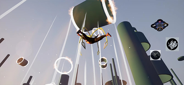 4、我们移动角色从平台上跳下,然后按住滑翔键位进行滑翔,来到另一个平台;