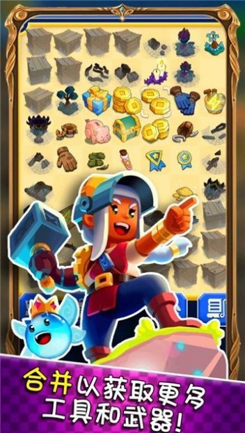 3、参与迷你小游戏,合并物品获得更多工具和武器,用于建设城市和寻找失落的宝藏。