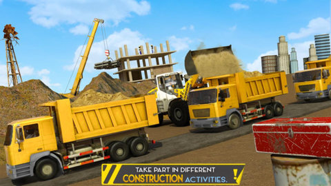3、游戏中还可以驾驶不同的车辆,在施工过程中给你不一样的驾驶体验,解锁各种卡车完成运输任务,完美建造高大的城市建筑。