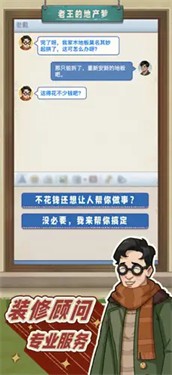 老王的地产梦是一款带你回到上个世纪八九十年代的模拟经营游戏,玩家创建了一间「老王地产公司」,接手邻里的装修订单,玩家需要根据顾客喜好进行装修改造,获得好评、提升公司人气积累财富,后续还可以购置属于自己的房产,并自由改造出租,走上人生巅峰,实现小康之路。