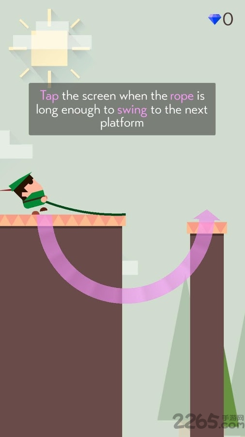 当绳索长度足以够到下一台面时,点击屏幕,即可完美软着陆。积攒宝石可以解锁更加炫酷的游戏体验!
