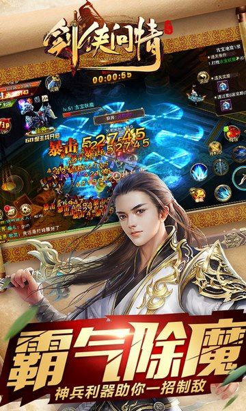 2、另外游戏设有野外单挑、跨服乱斗、城池战等多种PK玩法,热血重燃,江湖争霸,与百万玩家一起体验轻功飞行、正统武侠大作!