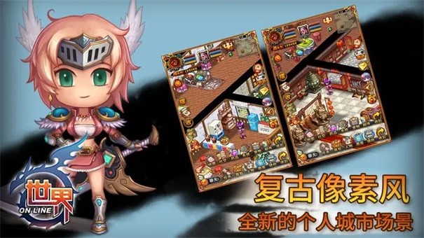 2、游戏画风走的Q萌可爱风格,游戏玩法以冒险体验剧情为主,同时游戏里的城市系统非常需要玩家的经营头脑,来世界ONLINE成就一番霸业吧。