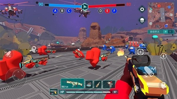 3、灵活的使用手指进行角色的操控,拿起重型武器开展射击决斗。