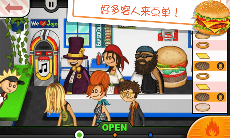 只有你做出好的汉堡让您的客户吃的高兴你才能赚取更多的积分和水平。当你的等级提高时你才会在店里打开新的配料新的顾客就会开始参观汉堡!这样才会吸引更多的客人来你的汉堡店吃汉堡哦!