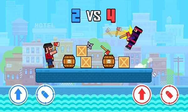 双人射击大对决手游是一款非常有趣的射击游戏,游戏支持双人同屏对战,能让玩家和朋友一起愉快的玩耍,游戏提供大量的武器道具,玩家需要拿起手中的武器,把对手击飞出去,感兴趣的朋友快来下载吧!