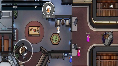 1、在完成平民任务的同时警惕身边的所有人,细致观察找到隐藏在鹅群中的坏鸭。