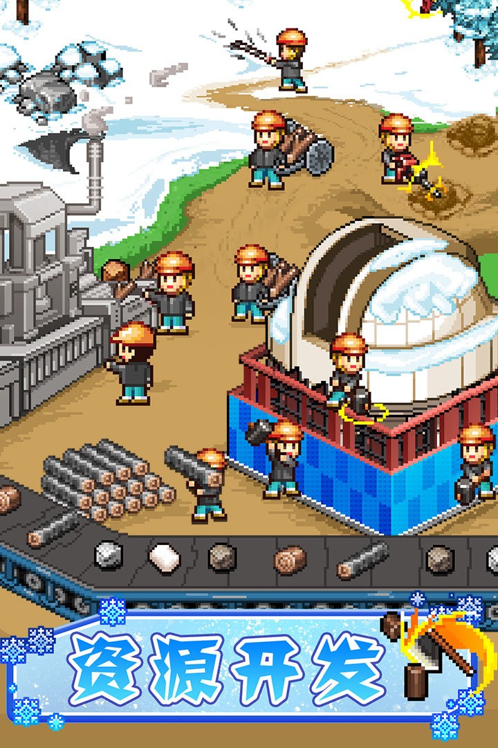 出现赞助商后就开发开拓功能,开拓滑雪场场地可获得各种材料资源,材料有:木材、木箱、水、雪、铁矿土等资源。开拓需要开拓工,开始只有两名,可通过游戏解锁新的开拓工,但需要开发功能研究。