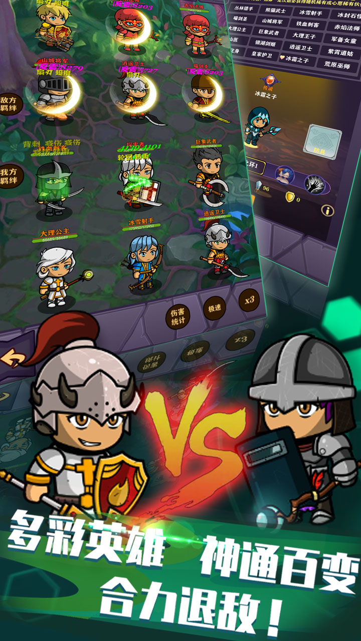 防守型:角色选择高血量低攻击成长,装备配备格挡、恢复、嘲讽等防御技能。