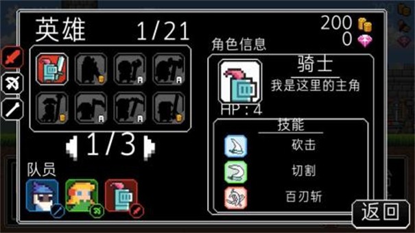 冲鸭三英雄汉化版是一款非常有趣的冒险像素游戏,在这款游戏中你可以根据自己的需要来选择合适的角色进入你的部队,让你能够用更加强大的阵容来挑战很多不同的boss,升级你的技能让伤害变得更高、cd变得更短,能够冒险的让你的旅途变得轻松。