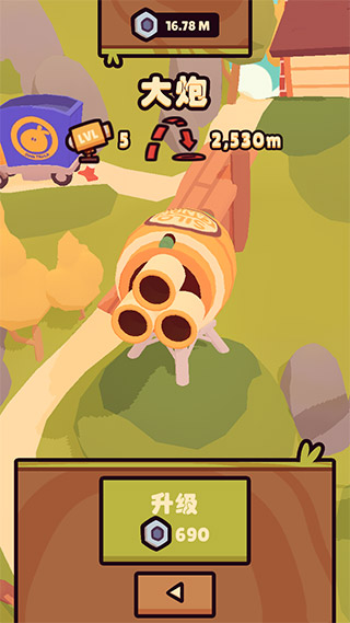 2、靠用大炮发射有知觉的水果赚钱,飞越山村,穿越狭窄的山谷,发现神奇的环境,最重要的是在水果过期之前卖掉它。