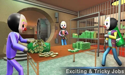 移至纽约市,与火柴人抢劫犯黑帮小伙与纽约警察进行银行抢劫斗争,武装银行抢劫fps游戏中扮演射手,与出色的同伴保持竞争。