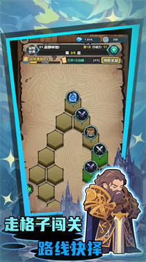 肉鸽RPG闯关式的卡牌玩法,通过招募各种各样的英雄,在闯关冒险中进行英雄组合搭配,形成各种各样的玩法流派,用以对抗世界中的邪恶力量。