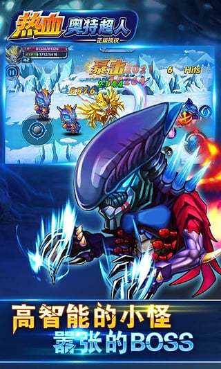 《热血奥特超人》游戏玩家拥有了一个奥特曼,通过搜集套装进阶,你就能变成8个奥特曼! 每一次换装,能力都得到进一步加强,玩家的进步,在游戏中的表现是很抢眼的。