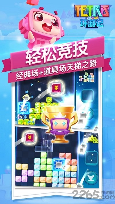 2、在竞技场上,用俄罗斯方块与其他玩家进行最刺激的对决吧!经典对战场里,实力即是一切!而道具场内,你更要考虑如何用道具去干扰对方
