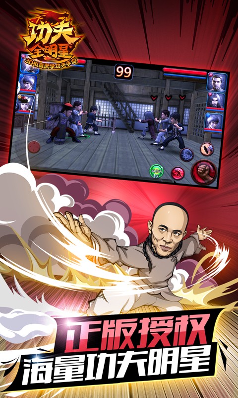 功夫全明星下载,功夫全明星是一款国产热门的趣味冒险解谜游戏,功夫全明星这款高画质游戏采用了顶尖游戏引擎技术研发制作,玩家可以体验到d拟真武学功夫,享受拳拳到肉的感觉,功夫全明星带你见识真实的功夫打斗,各种炫酷的招式任由玩家施展,以功夫为题材,玩家在这款游戏里面能够选择各种特色武功,各种经典的功夫绝学,玩家可以扮演黄飞鸿霍元甲叶问李小龙等众多的武打明星上阵杀敌。更多好玩的模式技巧等你来下载探索。