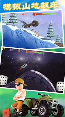模拟山地飙车是一款横版闯关冒险的手机游戏,驾驶山地车一路行驶闯关,收集地面上的金币,小心躲避障碍物和陷阱,驾驶山地车抵达最终点。模拟山地飙车游戏关卡很多,并且金币可以兑换各种山地车,类型丰富。甚至玩家还可以自定义零件,打造一辆属于你的山地车,享受闯关的冒险乐趣,体验驾驶过程。