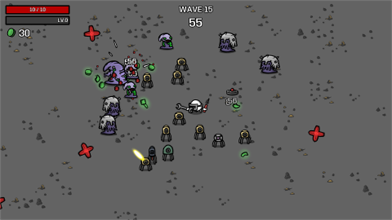 2、收集材料快速获得经验,并在一波又一波的敌人到来间隙中在商店策略购买道具!