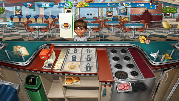3、设置时间系统增强烹饪乐趣,厨师需要在规定的时间制作多少道美食;