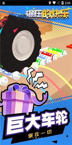 1、碾压的快乐是一款趣味闯关的游戏,玩家进入游戏操控一个轮胎不断的前进,在超多场景中滚动,
