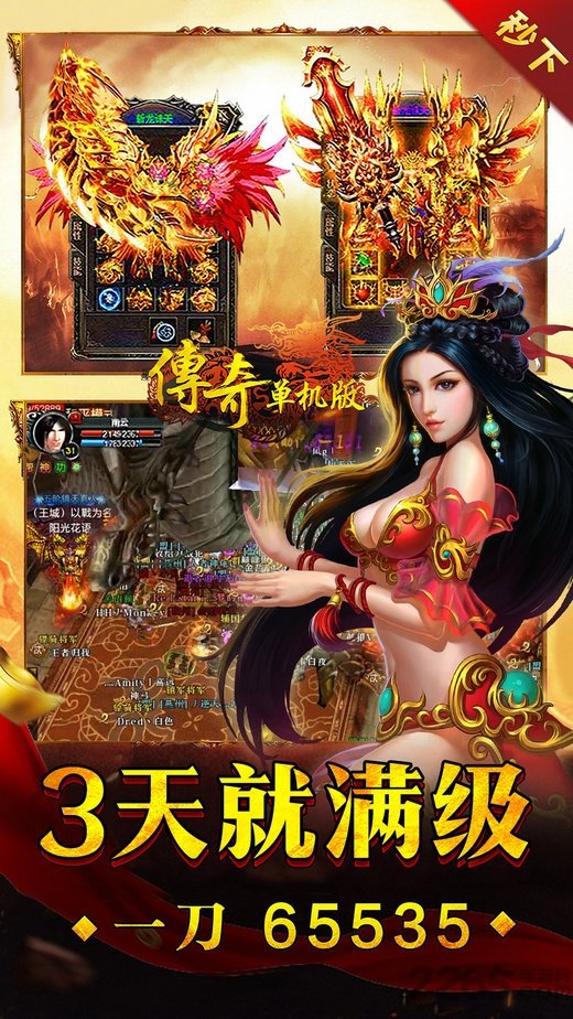 野外夺宝、红名爆装,竞技场,让你酣畅PK;千人同屏,点燃激情,再现攻沙盛况。