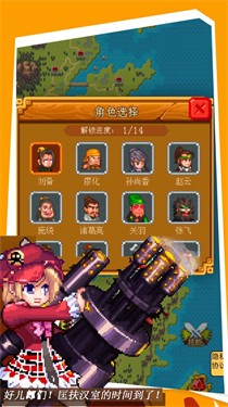 这是一款三国像素风格的闯关割草类游戏,热血杀敌,奋力出击,消灭一切敌人通关下一层。割草派对三国让每位玩家享受最畅快的割草战斗,三国武将随意选择。