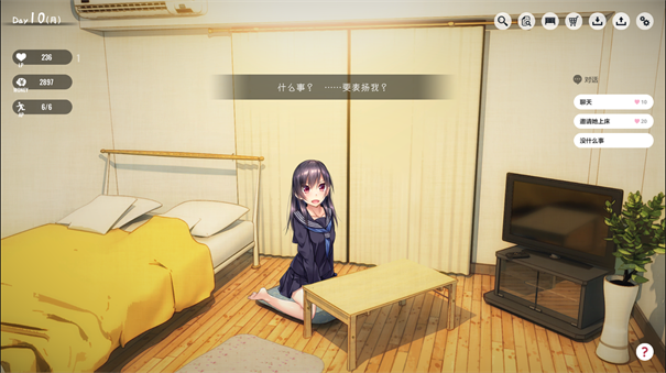 1、游戏中很多行动都会扣除情绪值。基本上洗澡,摸头,喝咖啡,谈话都会增加情绪值。