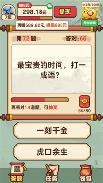 4、挑战更多成语答题的关卡,领取红包金额奖励。