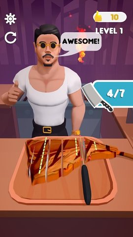 2、并不需要你真正准备盐,手指滑动或者点击来撒盐,完成烤肉的制作。