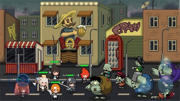 1、和少女一起打僵尸,释放技能,一路闯关。