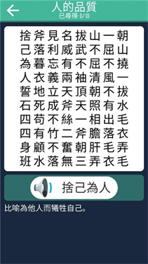 2、操作简单易懂。您需要做的就是在所有汉字中寻找成语