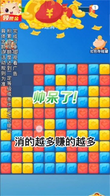 如意消消宝,一个真正能领现金红包,赚钱的消除游戏,而且现在如意消消宝登录也有红包哦,最轻松的方块消除玩法,过关就会有红包弹出来,千万不要错过。
