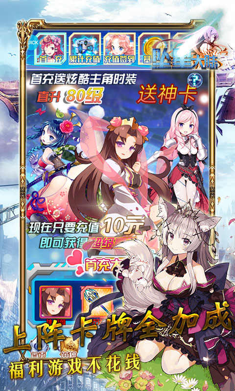 以二次元为游戏题材,由BT行业顶尖研发团队精心打磨出品,玩法多样,技能花哨,性感二次萌妹陪你组队冒险,上线豪礼相送,千元真充送不停,累计签到激活无限资源卡,核心道具任意购买,真正0氪玩家福音,玩家组建属于自己的二次元萌妹共同对抗黑恶势力,私人定制称号更是逼格拉满,还在考虑什么呢?快来体验吧!!!