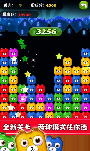 1、和消消乐一样,两个及以上的熊熊即可消除,单指操作哦!