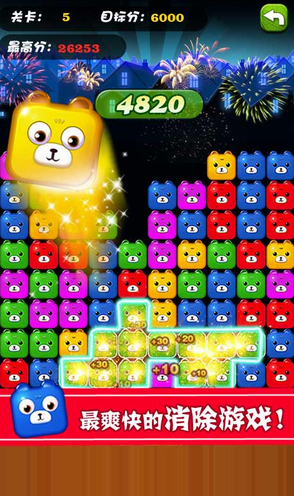 3、同时消除的熊熊越多,获得的分数就会越多;