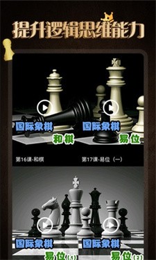 国际象棋学堂是一款专注于提高玩家国际象棋水平的游戏。国际象棋学堂这款游戏提供了大量视频教程和练习模式,帮助玩家从初学者到高手的不同阶段逐步提高自己的棋艺。此外,游戏还收集了大量经典的残局,让玩家在解谜中更好地锻炼自己的逻辑思维能力,为广大爱好国际象棋的玩家带来了极佳的游戏体验。
