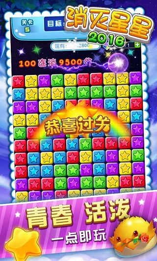 消灭星星官方正版是一款简单而有趣的益智游戏,通过消除彩色星星来完成关卡挑战。游戏玩法简单,但趣味性十足,让玩家可以轻松地放松紧绷的神经。丰富多样的关卡设定和道具系统增加了游戏的趣味性和挑战性,让玩家乐在其中,快来挑战自己的反应速度和消除能力吧!