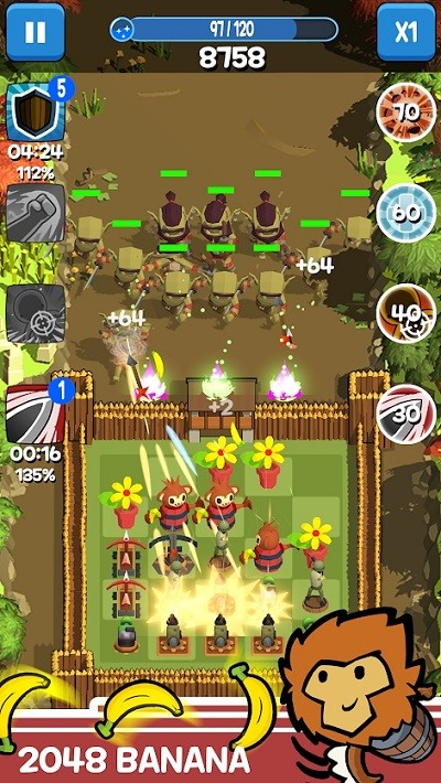 2、合成升级获得更多的助力,抵御一次次的进攻开启新关卡。