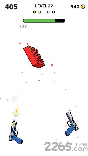玩家将会以独特的第二人称视角来控制两把手枪,并用类似于fc游戏的玩法将游戏中出现的任何东西不断的打击飞到空中不让它掉落~玩法较为轻松,但比较考验玩家的注意力集中程度。