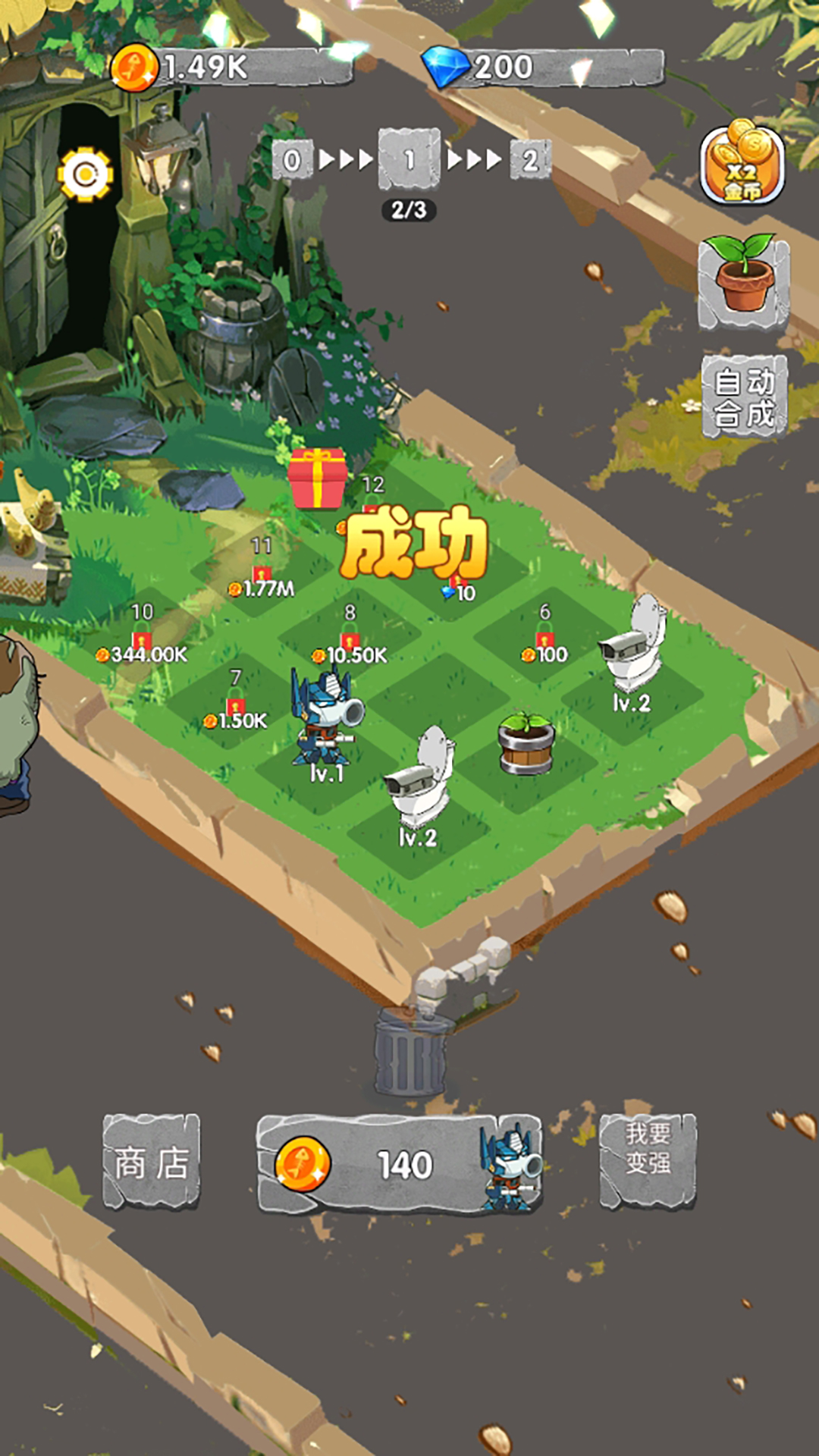 2、利用合成来提升植物的等级,利用它们的力量来保护你的后花园。