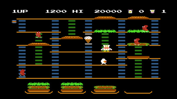 一个有些类似大猩猩和大力水手这种的带有益智风格的游戏,这款汉堡时代fc版游戏中,你将扮演厨师,跳跃闯关,收集更多的汉堡材料可以获得更多的积分,游戏规则很简单,把每一关的汉堡做齐了就行了,不错这个过程还是比较难的,就算在第一关也不是随随便便就能过.
