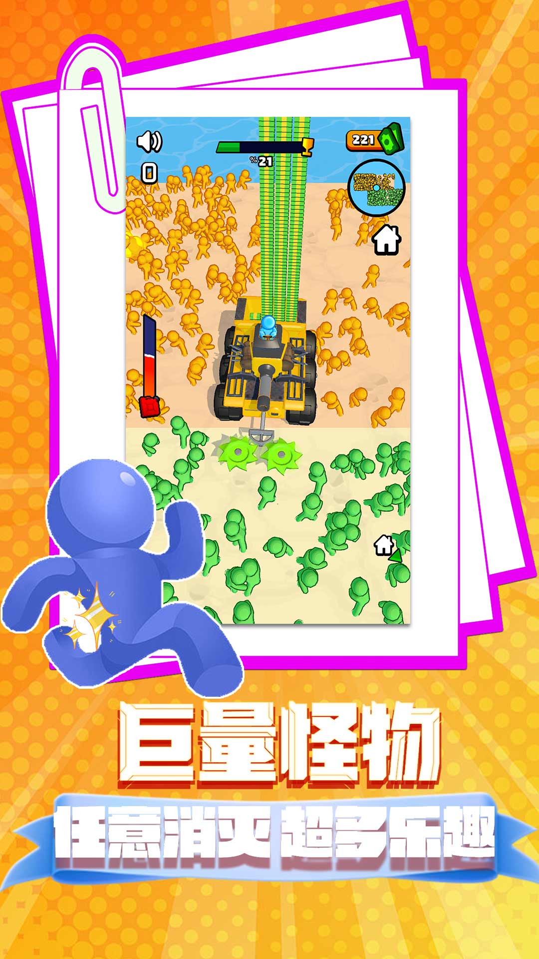 3、只有击败众多的敌人,才能让系统为你解锁出新的关卡,以及全新的玩法。