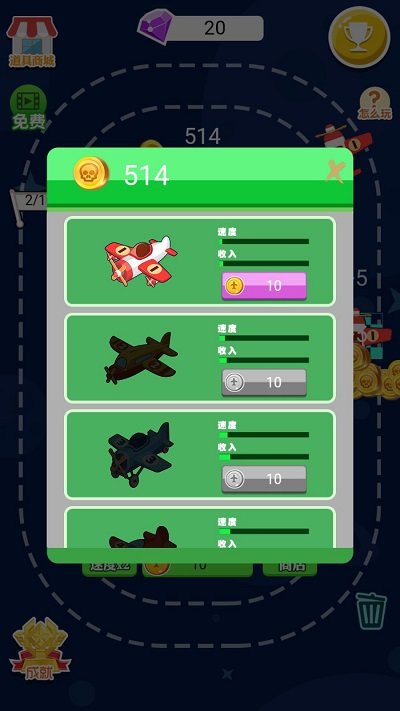 ·管理飞机飞行,不同的飞机都可以产生收益,赚取更多的金币